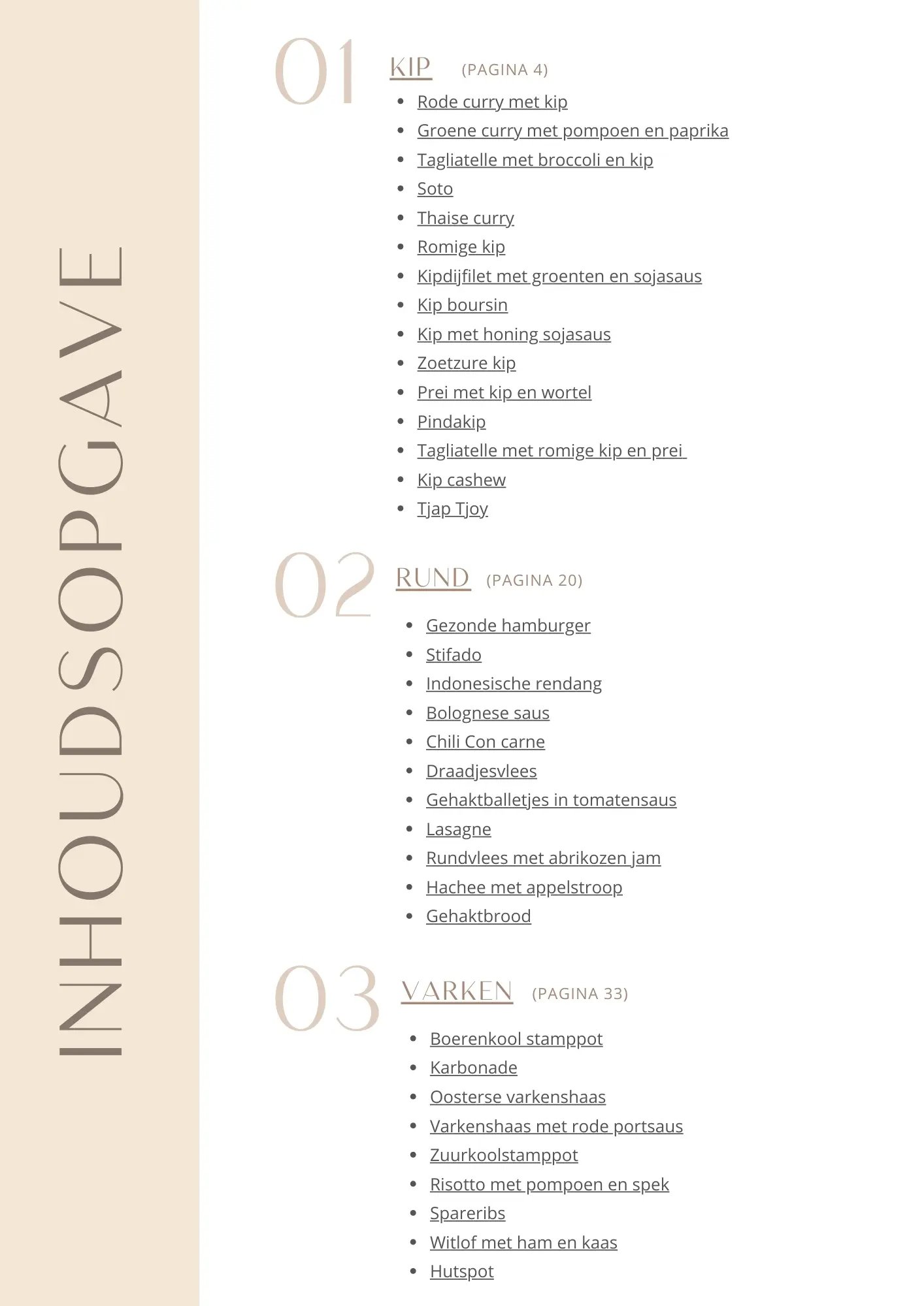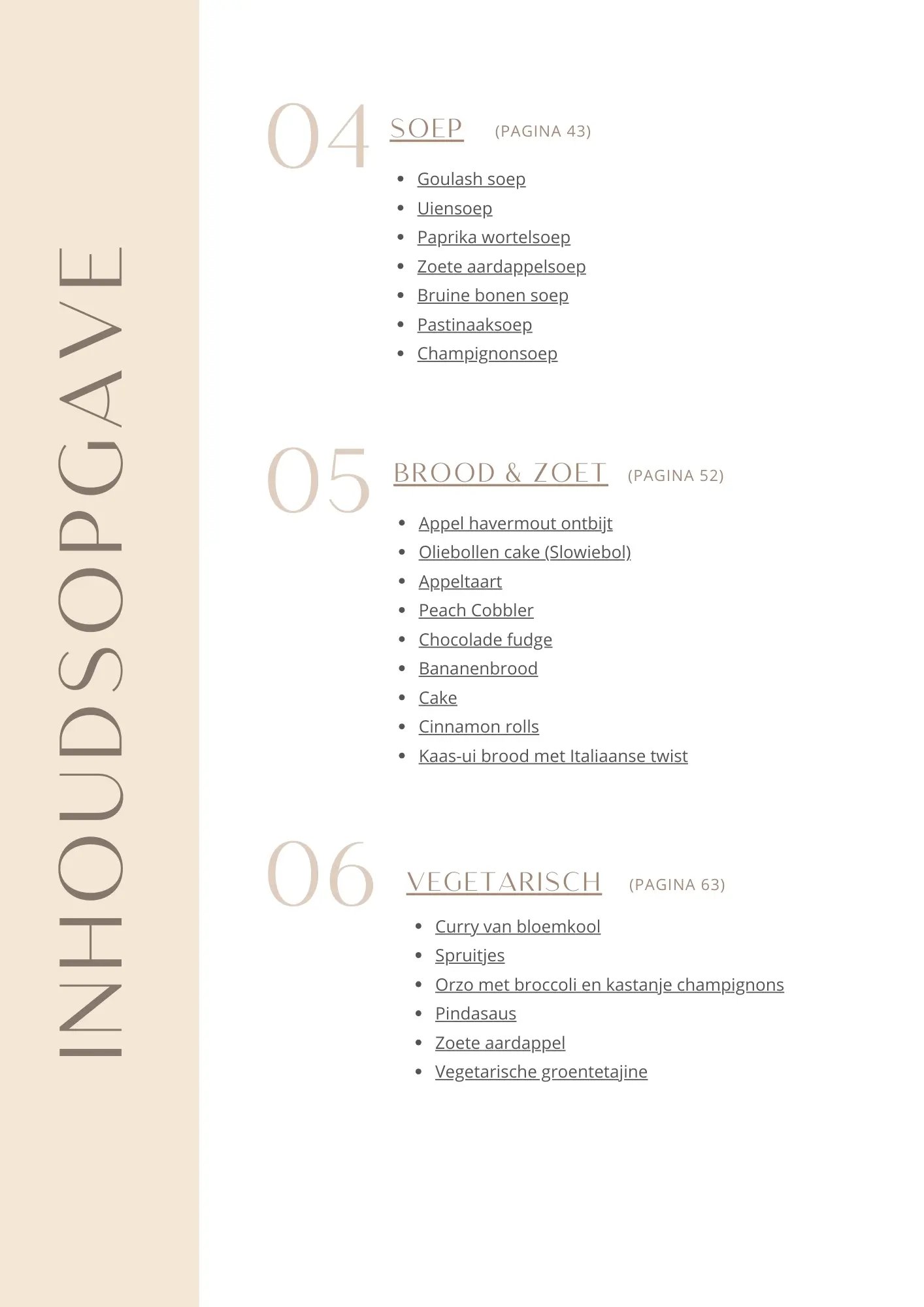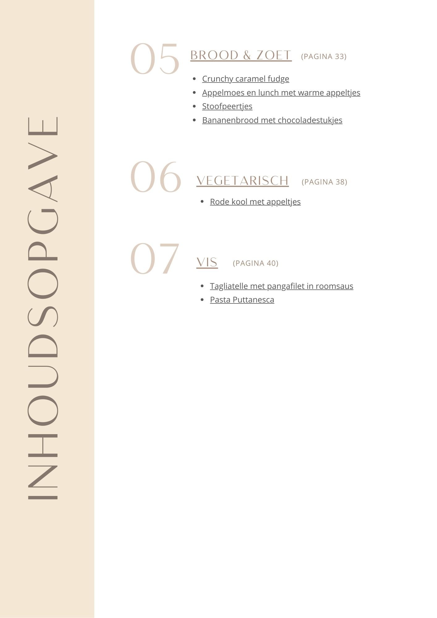 Inhoudsopgaves e-books & kookboek