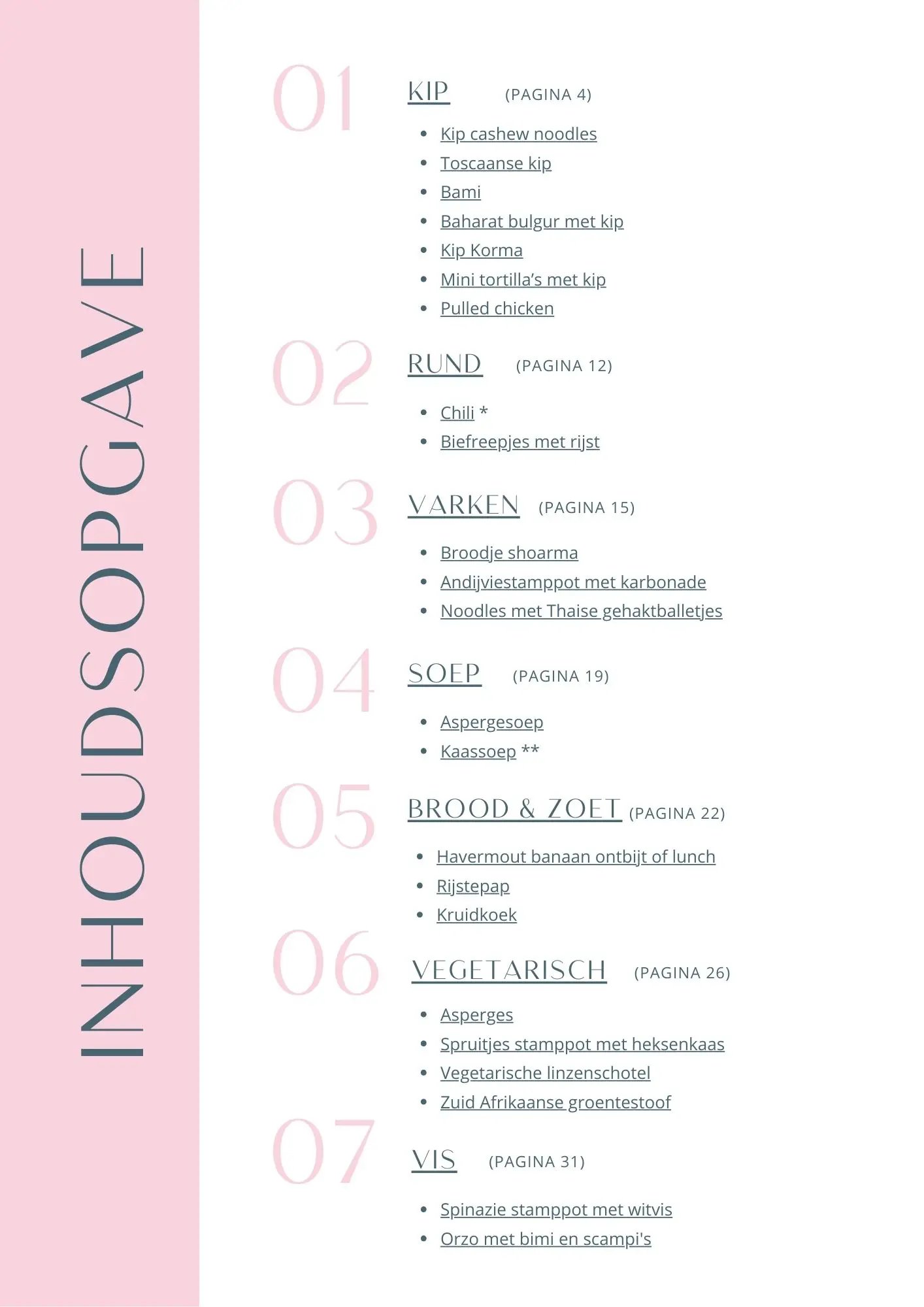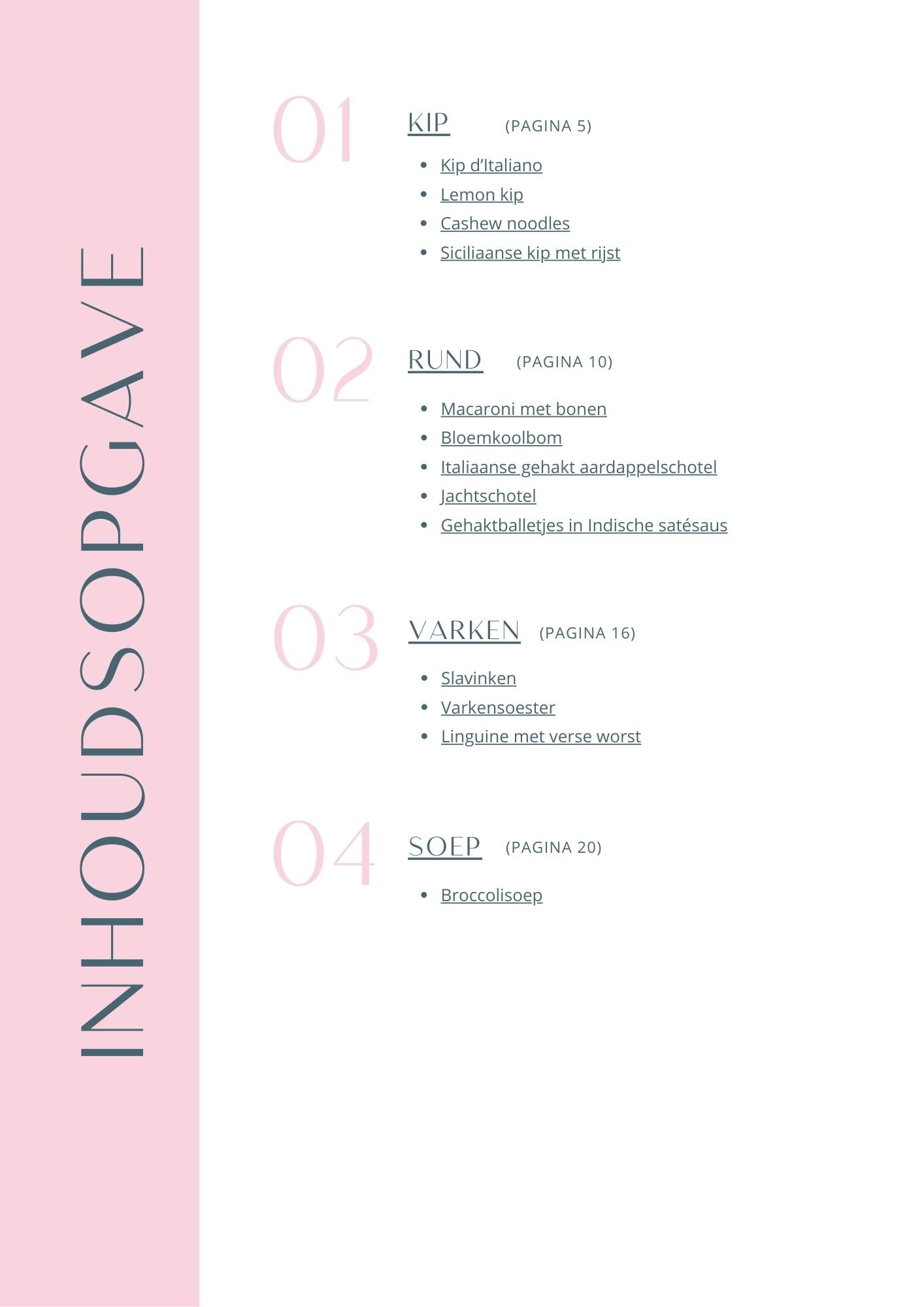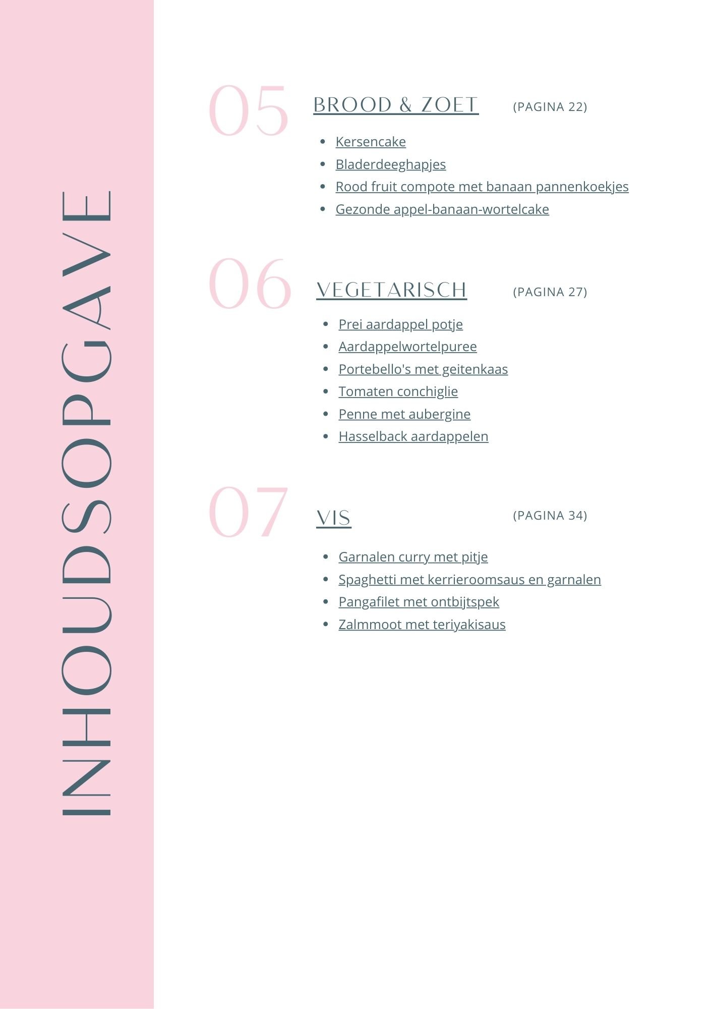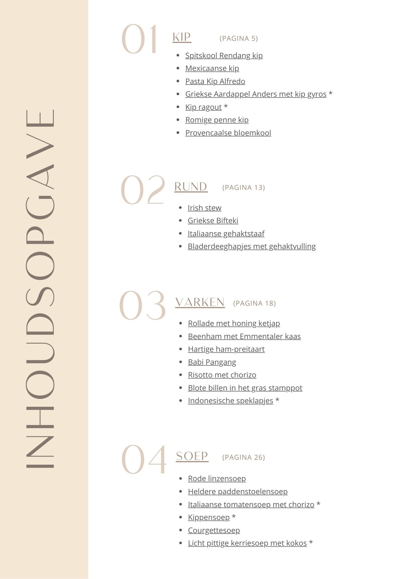 Ontdek hier welke recepten er in welke e-books staan & welke recepten je in het kookboek terug vindt.